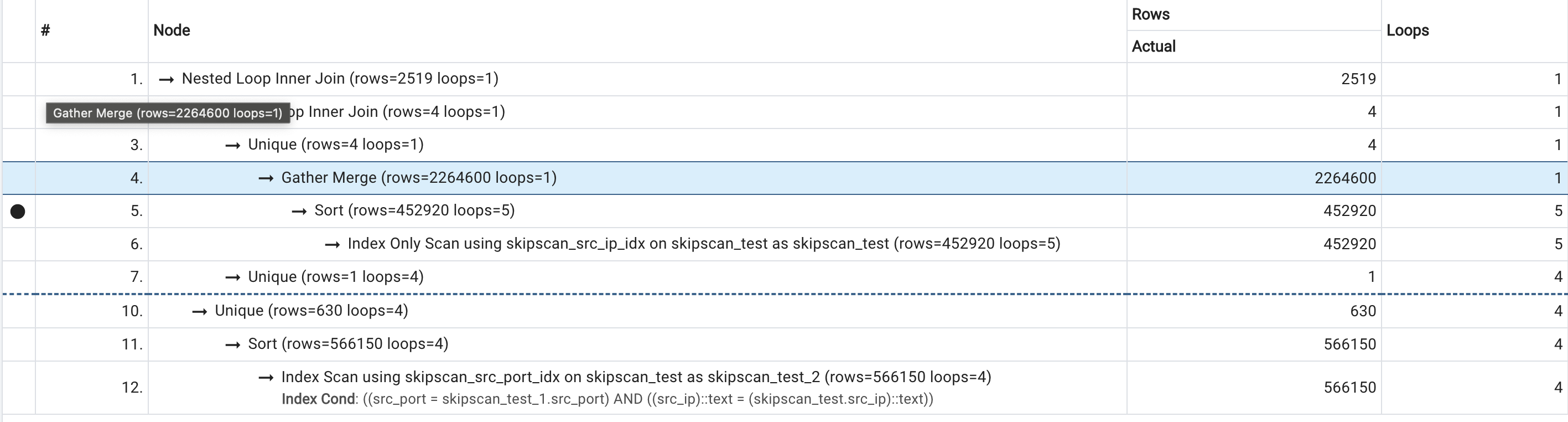 A question was recently asked on Twitter about finding the most recent set of values based on two columns. While one of the fastest ways to do this in TimescaleDB can often be to use SkipScan, facilitated by DISTINCT ON(), the current implementation only allows skipping over one indexed column, not two.